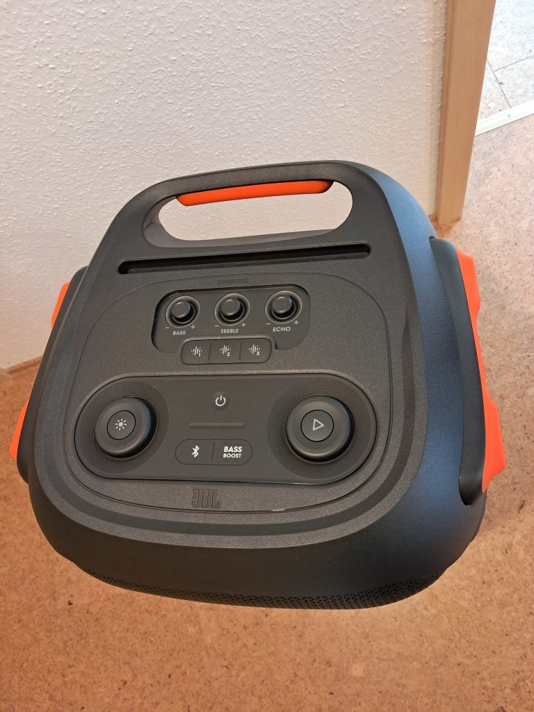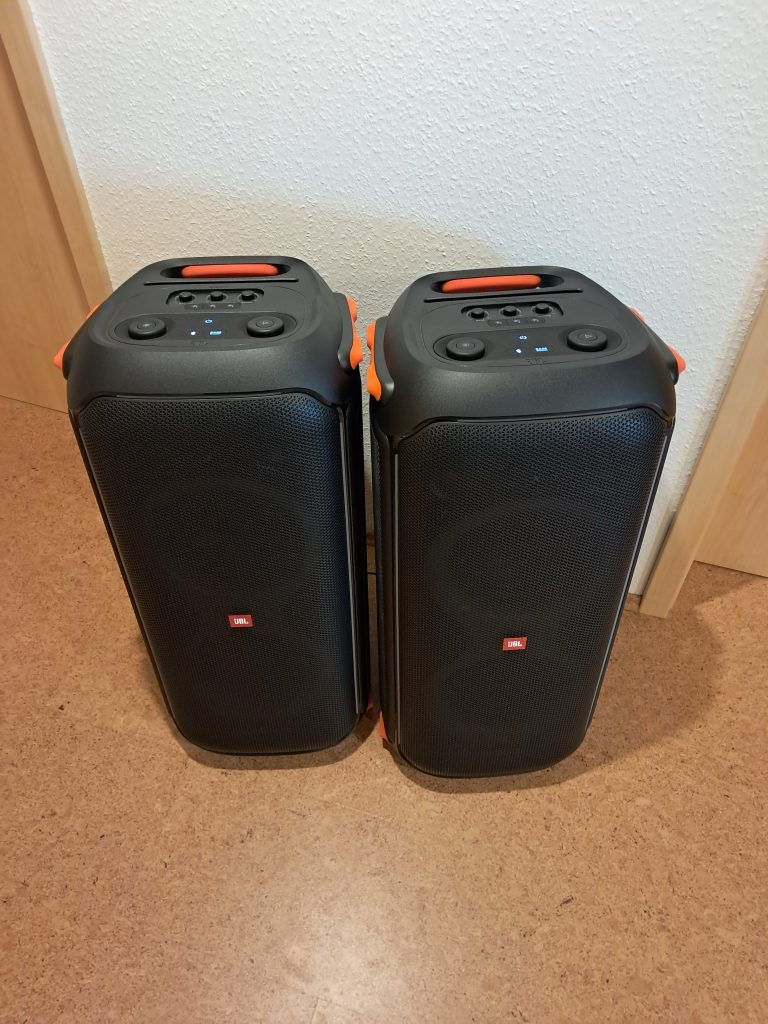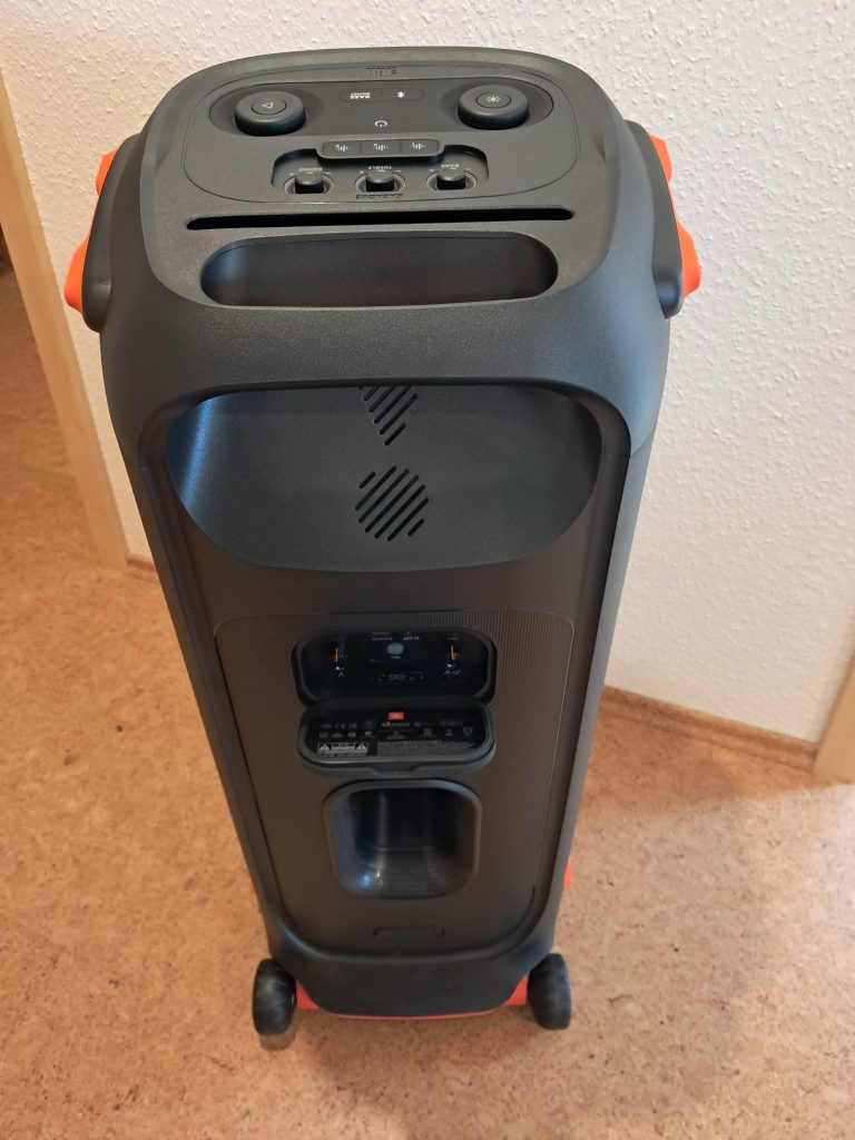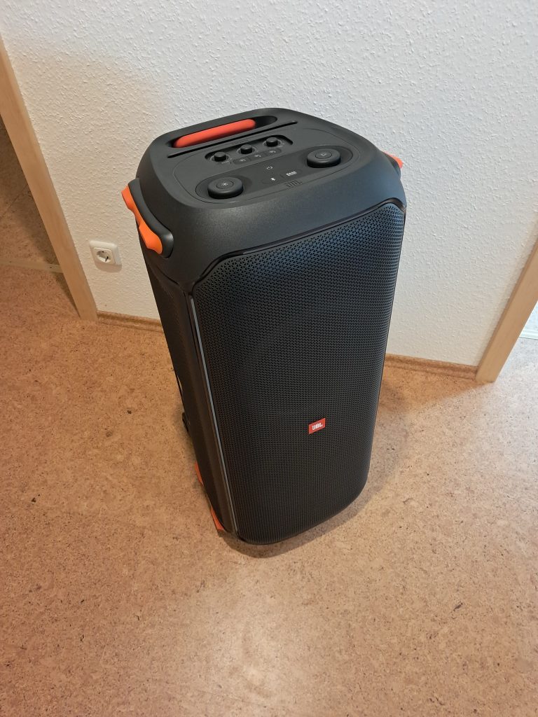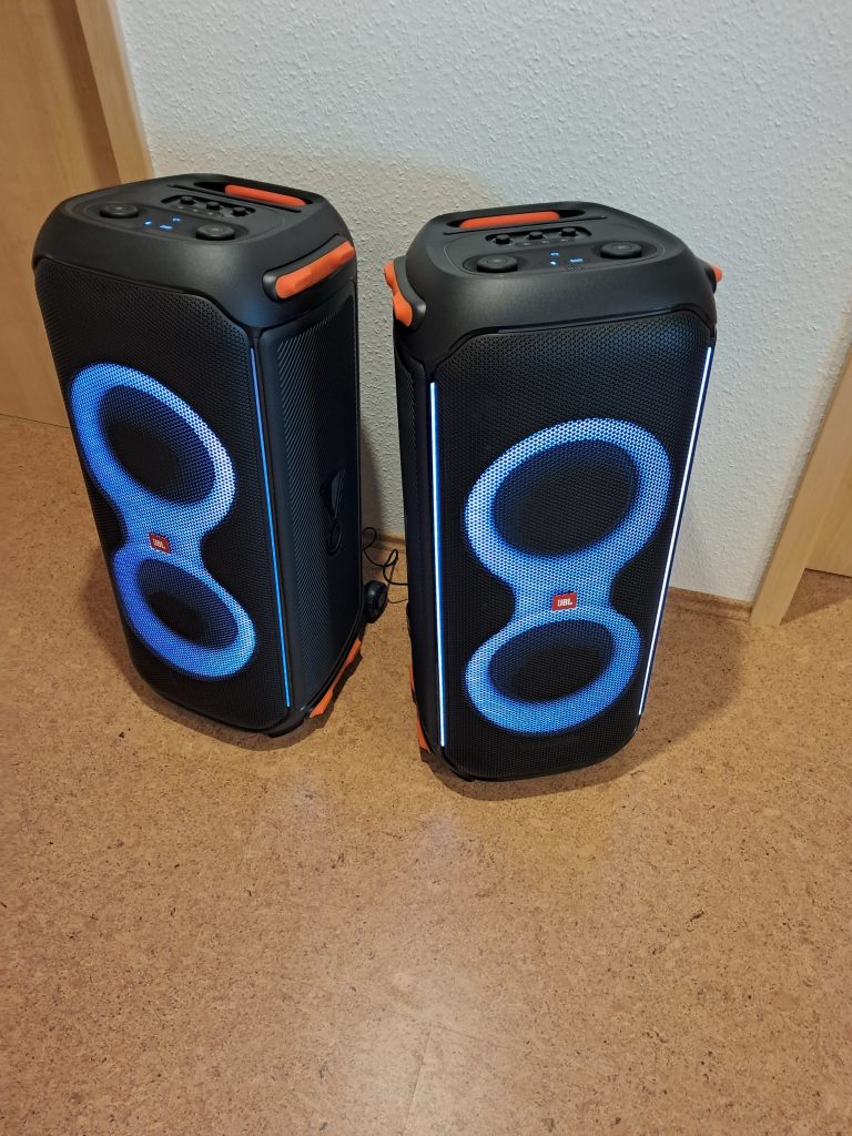 Die JBL Partybox 710 bringt mit ihrem beeindruckenden 800 Watt Sound jede Feier auf das nächste Level. Mit dynamischen Lichteffekten, tiefen Bässen und kabelloser Bluetooth-Verbindung ist sie perfekt für drinnen und draußen. Dank robustem Design, integriertem Griff und Rollen lässt sie sich bequem transportieren. Ideal für Musikliebhaber, die kraftvolle Beats und beeindruckende Lichtshows suchen. Zwei dieser Boxen kannst du kabellos und unkompliziert miteinander verbinden. Im Vergleich zur JBL Partybox 310 besitzt die JBL Partybox 710 jedoch keinen Akku und benötigt daher jederzeit eine Stromversorgung.