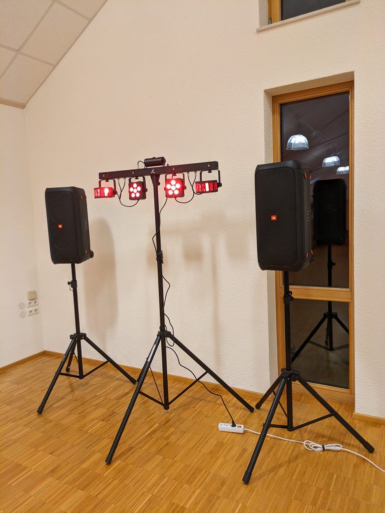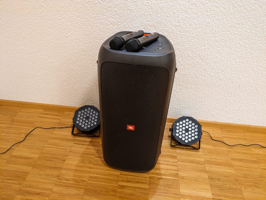 Für kleinere Geburtstagsfeiern, Party-Abende oder gemütliche Runden ist unser kleinstes Paket geeignet. Zu einer JBL Partybox 310 bekommst Du zwei Funk-Mikrophone und auch eine kleine Beleuchtung.